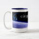Die tägliche Verbindungs-Medium-Tasse kennzeichnet unsere Fahne, die um den äußeren und reichen blauen Innenraum eingewickelt wird. Gekommen. Trinken Sie Kaffee mit uns!