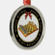 Élégant "Chess Master" cadre argent haut de gamme ornement rond. Un beau cadeau de gardien pour un membre de la famille ou un ami qui aime jouer aux échecs. L'ornement comporte un échiquier à l'intérieur du centre du cadre doré avec une formulation circulaire en or qui dit "Maître d'échecs", y compris un symbole de chaque pièce d'échecs aussi. Ce design est également disponible dans notre boutique en tant qu'ornement personnalisé double face en céramique.
