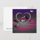 Dieses Bild zeigt eine surreale, digital erstellte Szene mit einer Sammlung metallischer Herzformen, die vor einem dramatischen, mehrfarbigen Hintergrund schwebt. Die Herzen unterscheiden sich in ihrer Farbe - einige sind glänzend silber, andere glänzend schwarz oder dunkel lila. Diese Herzen sind reflektierend und geben ihnen ein dreidimensionales, fast flüssiges Aussehen. Im Hintergrund findet man eine abstrakte Mischung aus tiefen Purpur, Schwarz und pinkisch-magentafarbenen Farbtönen, die eine stimmungsvolle, zwielichtige Atmosphäre schafft. Der Gradienteneffekt in der himmelähnlichen Kulisse erhöht die Tiefe, sodass die Herzen so erscheinen, als ob sie im Weltraum suspendiert oder in einem traumhaften Vakuum treiben.