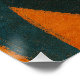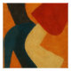 Two diagonal bands of burnt orange clash then dissolve into deep forest green & indigo silence. Ash gray erodes the fire. A textured gray circle remains—shrine memory. Faint gold threads weave resilient new bonds.