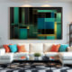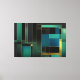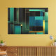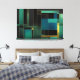 Goldene Linien und Blöcke in Grün-, Blau- und Schwarztönen bilden eine visuelle Symphonie des Gleichgewichts und der Eleganz. Das Stück vermittelt Modernität und Tiefe, wie ein leuchtendes Labyrinth, das das Auge durch Pfade reiner abstrakter Harmonie führt.