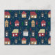 Diese schöne Weihnachtspostkarte des Anwesens zeigt ein festliches Häusermuster auf einem dunkelblauen Himmel. Dieses hübsche Feriendesign ist mit Pinien und weißem Schnee dekoriert.