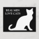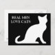 Echte Männer Liebe Katzen Postkarten. Niedliche Karte für Katzenliebhaber. Schwarz-Weiß-Design mit kitteniger Silhouette und anpassbarer Hintergrundfarbe.