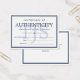 Elegantes und minimalistisches Echtheitszertifikat in marineblau und weiß, das Sie Ihren Namen oder Firmennamen hinzufügen können. Personalisieren Sie Ihre Initialen noch weiter in blass blau.
