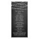 Simple mais élégant, les lampes à cordes de la collection de mariage de tableau noir est un design étonnant avec de belles lumières à cordes blanches suspendues sur un arrière - plan à effet de tableau noir, qui est parfait pour toute célébration mariage moderne. Ces programmes peuvent être personnalisés pour votre occasion spéciale et rendraient la commande parfaite de service pour votre mariage, douche nuptiale, fête de fiançailles, fête d'anniversaire et bien d'autres occasions spéciales. Ajoutez votre libellé personnalisé à cette conception à l'aide des cases "Modifier ce modèle de conception" situées à droite de l'élément, ou cliquez sur le bouton bleu "Customiser" pour arranger le texte, modifier les polices et les couleurs et ajouter des informations ou des images supplémentaires à cette conception.