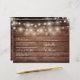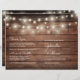 Un programme de mariage rustique élégant avec de jolies lampes à cordes sur un arrière - plan en bois rustique. Ajoutez les détails de la cérémonie spéciale du mariage dans une typographie chic et élégante. Plier main pour créer un beau programme de mariage plié. Conçu par Thisisnotme©