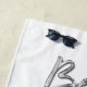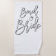 Serviette de plage avec effet argent Texte de la mariée de plage (ressemblant, imitation) et anneau imprimé sur un arrière - plan blanc