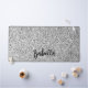 Personnalisez le tapis de bureau girly avec votre nom et votre initiale. Espace de travail cool unique pour son bureau, sa chambre, son travail, son atelier, sa salle de jeux. Cool, amusante, élégante fausse idée de cadeau brillant pour elle. De belles parties scintillant brillantes brillantes en argent girly brillent. Photo des éclats d'argent pas de parties scintillant réelle!