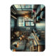 Perfektes Geschenk für den Reise- und Kaffeeliebhaber. Das Gemälde fasziniert eine stimmungsvolle und stilvolle Szene in einem kleinen, eklektischen, angesagten Café in Seattle. Das Interieur des Cafés vereint urbane und rustikale Elemente mit sichtbaren Ziegelmauern und modernen Metallkonstruktionen. Die Farbe wird von dunkelgrauen Farbtönen mit lebhaften Neonakzenten dominiert, die ein trendiges, jugendliches Ambiente schaffen. Das Mobiliar ist eine faszinierende Mischung aus Vintagen Sofas und minimalistischen Bar, die den eklektischen Charme noch verstärken. Eine prominente Glastür öffnet sich zur belebten Straße im Freien und verbindet das gemütliche Interieur des Cafés mit dem dynamischen Leben der Stadt. Künstlerische Details wie abstrakte Gemälde und Lampen im Industriestil tragen zur angesagten Atmosphäre bei, während einzigartige, geometrisch geformte Lichter sanfte, umliegende Beleuchtung erzeugen faszinierende Schatten und das modisch-elegante Ambiente des Cafés unterstreichen.