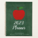 Joli professeur d'école primaire 2023 planificateur avec un arrière - plan de tableau rouge vert et une simple pomme rouge sur le devant. Ajoutez votre nom et votre école. Ces planificateurs customisés peuvent également être utilisés pour les directeurs d'école, les surintendants ou tout autre éducateur du district scolaire.