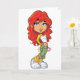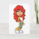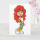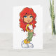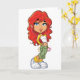 Pour tous ceux qui aiment écouter de la musique, c'est un grand design. C'est une fille avec des cheveux rouges qui a son lecteur mp3 sur avec des bourgeons d'oreilles dedans et elle pose en écoutant de la musique. Ce design d'écoute de musique est superbe sur ces cartes de voeux