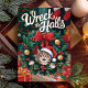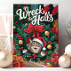 Ajoutez un peu d'humour à la saison des Fêtes avec cette carte de Noël "Wreck the Halls" ludique! Doté d'un adorable chat portant un chapeau de Père Noël et regardant à travers une couronne festive, cette carte est parfaite pour les amoureux de les chats qui peuvent se rapporter au malheur dans lequel leurs amis furieux se retrouvent autour des fêtes. Le décor de vacances plein de vitalité, y compris les saints, les ornements et les cadeaux, fait de cette carte une façon joyeuse et légère d'envoyer des voeux de Noël.