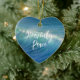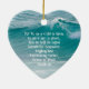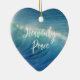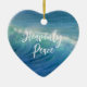 Écriture ornement de Noël avec arrière - plan des vagues de l'océan. En forme de coeur, avec du texte personnalisable de part et d'autre. "Paix céleste" sur le devant et l'écriture du livre d'Ésaïe sur le dos. Le design ne fonctionnera pas sur le verre et les ornements de qualité supérieure, qui ne seront pas imprimés sur le dos.