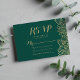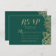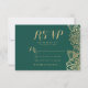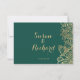 Cartes d'invitation de mariage élégantes et modernes avec lettrage manuscrit écriture manuscrite vert foncé et or thème mandala floral peint à la main.