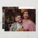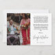 Carte de remerciements romantique avec deux de vos photos de mariage, une plus petite d'un côté et une plus grande de l'autre. Merci dans un script d'écriture manuscrite moderne, vos noms aussi, avec un texte de remerciement imprimé ci-dessus.