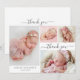 Écriture calligraphique élégante moderne 4 Photo Collage Carte de remerciement Bébé Fille. Caractéristiques une belle écriture calligraphique manuscrite merci queue de fonte script et votre message personnel. Facile à personnaliser avec les photos de votre bébé et les détails.
