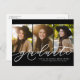 Célébrez vos invités de grade et d'invitation avec cette faire-part horizontale de graduation de trois photos et une carte postale d'invitation qui comprend un script de calligraphie moderne et tendance sur le devant et un retour personnalisable pour les détails de votre fête.