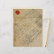 Ancien papier parchemin, avec texte vintage et sceau rouge. Ce papier est adorable dans les journaux de voyage, pour collages et scrapbooking. L'arrière du papier est réglé comme une couleur crème douce gratuite, de sorte qu'il pourrait être utilisé pour écrire du papier. Si vous souhaitez la même image à l'avant et à l'arrière, dans la section "modifier la conception", désélectionnez simplement le petit symbole de l'oeil pour la conception du dos. Des motifs vintages et des ornements de scrapbook correspondants sont disponibles dans notre boutique Zazzle, ainsi que de nombreux autres styles de scrapbook et papier journal. Pour obtenir les meilleurs résultats, sélectionnez un papier mat et texturé.