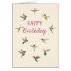 Geburtstagskarte für Kolibri-Liebhaber mit Anna's Kolibris. Die Innenräume zeigen auch einen Charme von ihnen. Mit ihren irisierenden Rose-rosa Kehle und smaragdgrünen Federn ist diese mittelgroße Kolibri an der Pazifikküste Nordamerikas beheimatet.