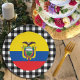 Teller: Rustikale Ecuador Party Teller mit Ecuador-Flagge umgeben von schwarz-weiß Büffel karierte Muster - Liebe mein Land, festliche Dekoration, nationale Patrioten / Sportfans