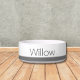 Un plat personnalisé dans les tons gris et blanc. Le nom de votre animal est placé dans une police gris moderne au-dessus d'une bordure de nuances de gris coordonnés.