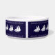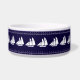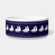 Le bol de chien est affiché en blanc avec une bande d'accent bleu marine avec un joli imprimé de voiliers et d'ancres. Grande taille affichée Customisez cet article ou achetez tel quel.