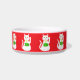 Ce magnifique bol de chat présente une image graphique d'un chat oriental blanc qui a de la chance. Le chat a de beaux yeux dorés et porte un médaillon d'or sur le collier autour du cou. Le chat a des oreilles roses et des chuchotements. Ce mignon petit chaton tient un jeton doré avec une incrustation de jade verte et un message en texte doré qui dit "Bonne chance".