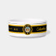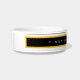 Pet Bowl blanc avec des cercles concentriques noirs et or avec "Y-NOT-ME CENTRE OF THE UNIVERSE COLUMBIA, MO." sur un rectangle noir et or. Au centre du cercle se trouve le Grand Sceau du Missouri. Nourrissez votre animal de compagnie dans un bol élégant. Ce design est un cri à Columbia, Missouri, une ville de champions.