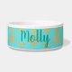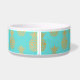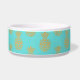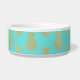 Aliments pour chiens/cuvette en céramique blancs de l'eau faite en turquoise, autour de l'extérieur, avec un motif d'ananas d'or. Personnalisez le texte fait sur commande pour votre animal familier ou comme grande idée de cadeau pour n'importe quel propriétaire d'animal familier.