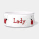 Joli plat d'aliments pour chiens fait avec les graphiques mignons des coccinelles rouges et noires tout autour du plat en céramique blanc. Customisez le texte rouge pour une cuvette personnalisée que votre chien peut être fier de. Fait une grande idée de cadeau.