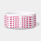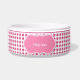 Plat élégant d'aliments pour chiens, avec des graphiques d'une bande rose et blanche de guingan, autour du plat, et un secteur décoratif rose des textes, au milieu pour votre nom d'animal familier. Le texte fait sur commande blanc vous permet de customiser avec votre nom d'animal familier, parce que une cuvette personnalisée votre chien peut être fière de. Fait une grande idée de cadeau.