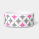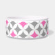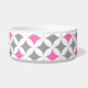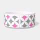 L'amusement et le chien moderne roulent en cercles gris-foncé et fuchsia de rose indien et blancs rétros et décontractés et motif géométrique audacieux de diamants. Personnalisez cette cuvette de chien avec votre propre texte pour un bol unique de nourriture ou d'eau pour votre chiot.