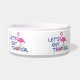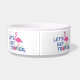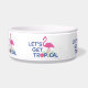 Ce bol pour chien avec un graphique amusant et mignon "Allons-y tropical" avec des flamants roses est parfait pour votre animal de compagnie. Conception d'Inge Lewis. Cadeaux formidables pour votre famille, vos amis ou vos invités. Trouvez plus d'articles assortis dans la boutique ingeinc.com.