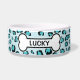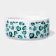 Ce bol pour animal de compagnie bleu a un motif d'impression léopard créé numériquement avec un nœud papillon pour chien qui comporte une zone de texte personnalisable à l'intérieur pour le nom de l'animal.