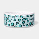 Ce bol pour animal de compagnie bleu a un motif d'impression léopard créé numériquement avec un nœud papillon pour chien qui comporte une zone de texte personnalisable à l'intérieur pour le nom de l'animal.