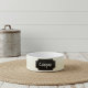 Un arrière - plan doux et blanc cassé avec un étiquette de type tableau noir entaillé. Personnalisez ce bol d'eau ou de nourriture pour animaux de compagnie avec votre nom de chien ou de chat dans une police manuscrite. Ce bol ajoutera un charme rustique à votre cuisine ou à tout espace avec une atmosphère vintage de ferme.