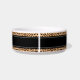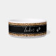 Préparez les repas de votre animal de compagnie avec ce bol pour animaux de compagnie personnalisé Empreinte de léopard. C'est un design moderne avec arrière - plan poster de animal noir et marron et customisé avec le nom de l'animal de compagnie en blanc, script à la main tendance en lettres sur le centre avant de la bande noire. Deux mignons petits empreintes de pattes sont sur le côté du texte. Cliquez sur l'option Personnaliser le modèle et entrez le nom.