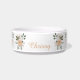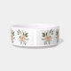 Ce bol personnalisé pour chien ou chat a un élégant imprimé floral de fleurs de pêche contre un arrière - plan blanc.