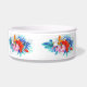 Boule d'animaux de compagnie personnalisée avec un bouquet de fleurs tropicales plein de vie et de beauté. Orchidées, hibiscus et feuilles tropicaux. Couleurs rose, turquoise, rouge et bleue.