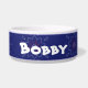 Bol pour animaux à motif floral bleu. Ajoutez le nom de votre animal.