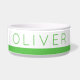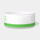 Boule de chien en céramique à rayures personnalisées pour la nourriture ou l'eau avec le nom de votre chiot et une bordure vert citron.