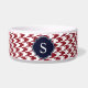 Cute et preppy Red and White Houndstooth Monogram Large Dog Bowl. Grand accessoire pour votre petite pooche de préppy.