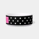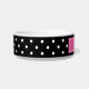 Motif à pois noir et blanc. Pois blancs sur le noir et au milieu il y a un rectangle rose chaud où vous pouvez ajouter votre texte.