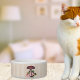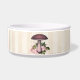 Joli look vintage bowl design dispose de champignons teintés rose avec des fleurs roses et feuilles verts luxuriants sur un arrière - plan rayé vintage