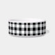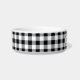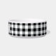 Ce chien de compagnie ou bol de chat personnalisé unique présente leur nom personnalisé dans un texte serif classique tout-casquette avec un arrière - plan rustique à motif de buffle de ferme en noir et blanc. Un bol d'eau et de nourriture élégant pour votre membre de la famille de la fusillade, disponible en taille moyenne et grande.