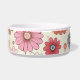 Un bol d'eau et de nourriture pour marguerites multicolores d'inspiration rétro est un imprimé gai pour votre bébé à fourrure préféré. Correspondance de la laisse, collier et autres accessoires.