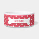 Écuelle Os Nom Chien Points Blancs Rose Corail