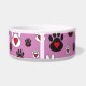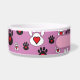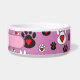 Show how much you love your fur baby with this pawprint design! It has black and white paw with red hearts on a pink background. Put your pet's name on the bowl to make it extra special, like your fur baby!