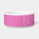 Bubblegum bowl rose chien avec "BEST DOG EVER" et le nom de votre chien customisé dans un script de calligraphie chic et élégant police texte superposition. Entrez le texte personnalisé que vous souhaitez pour l'arrière - plan et la couche supérieure du texte pour créer votre propre nourriture pour animaux de compagnie en céramique rose personnalisée ou bol d'eau. Voir notre collection de bols de coordination et obtenir un set!