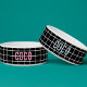 Motif de grille géométrique monochrome moderne avec texte bleu glace personnalisable bol pour animal de compagnie, accessoire mignon. Un cadeau idéal pour le propriétaire de l'animal de compagnie dans votre vie, personnalisé avec des noms dans un noir et blanc et de couleur bleu pastel